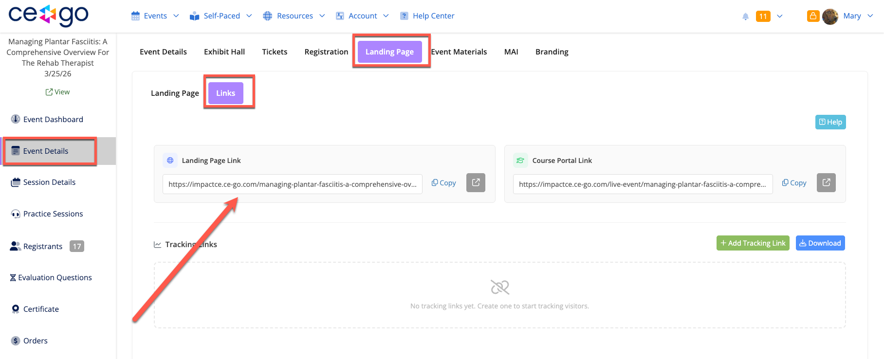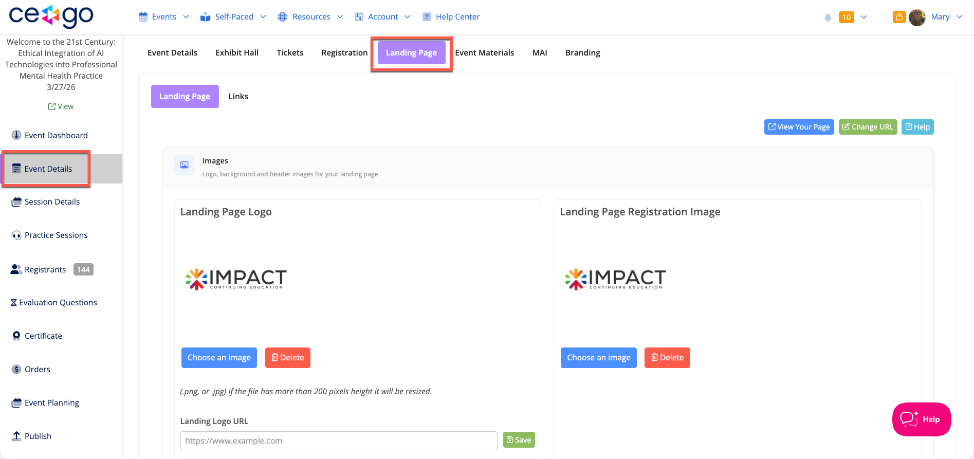 Your Landing Page is the web page where individuals will come to view details about your event and register. Information on your Landing Page is auto-populated using information from your Event Details and your Session Details, and displayed in a way designed to meet a variety of continuing education board's requirements.