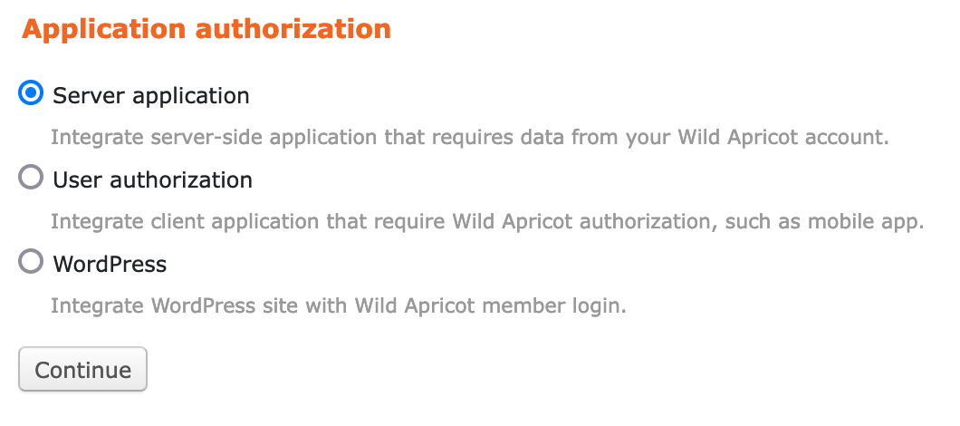 - Next select Server application and click Continue.