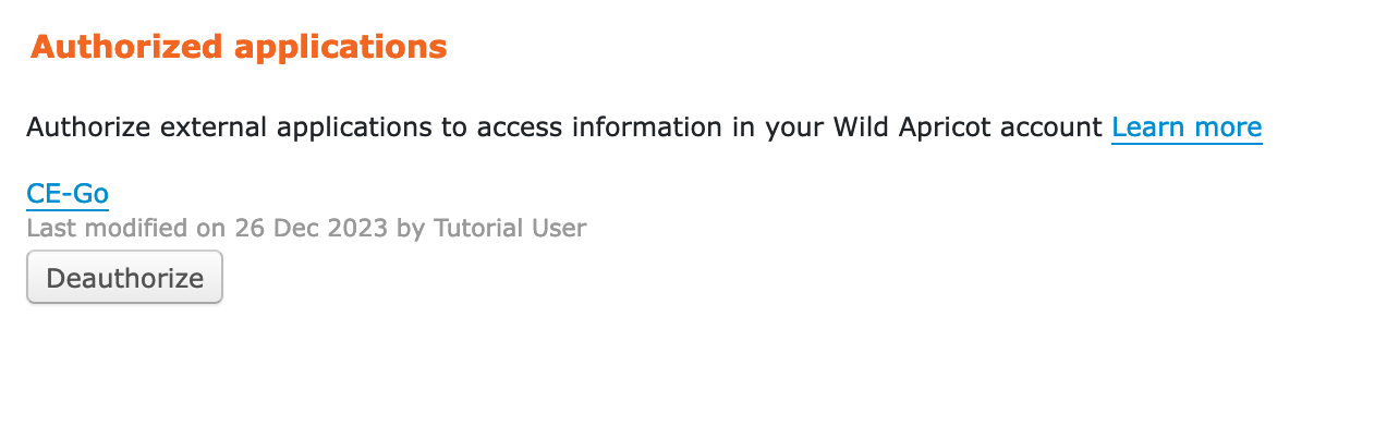 - Verify that you see CE-Go listed in your authorized applications page:
