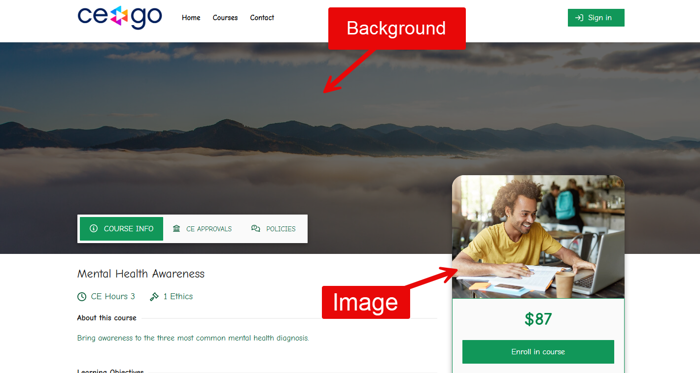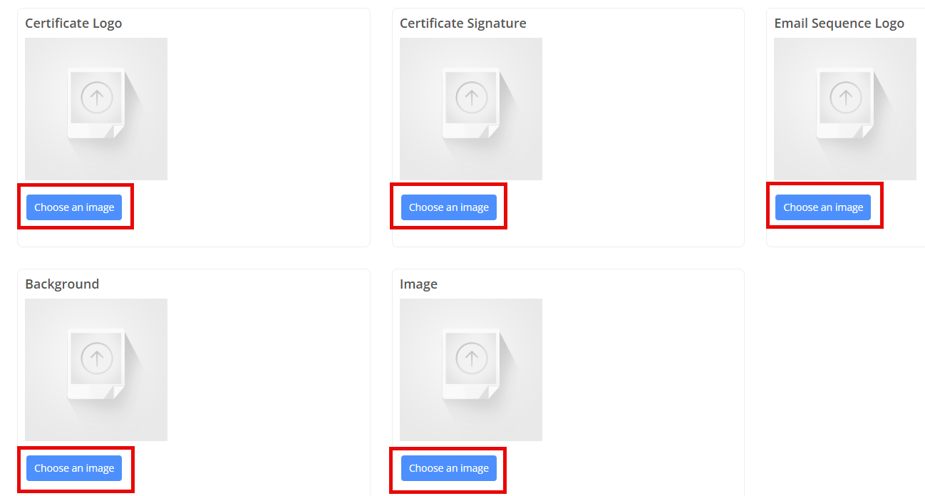 Branding is where you can customize the course to align with your brand. Here you'll find the certificate logo, certificate signature, email sequence logo, background imagery, and course image. The background image, course image, and certificate logo all have default medias that will be displayed if you do not upload your own.