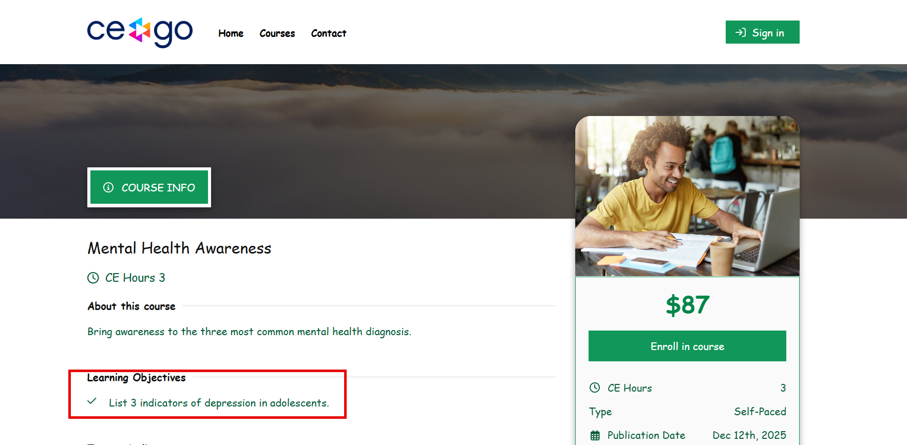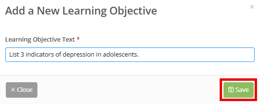 Under the Learning Objectives tab, you will enter the learning objectives for the course, one at a time.