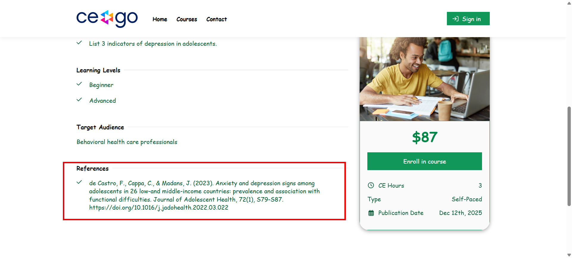 References will appear on the course Landing Page.