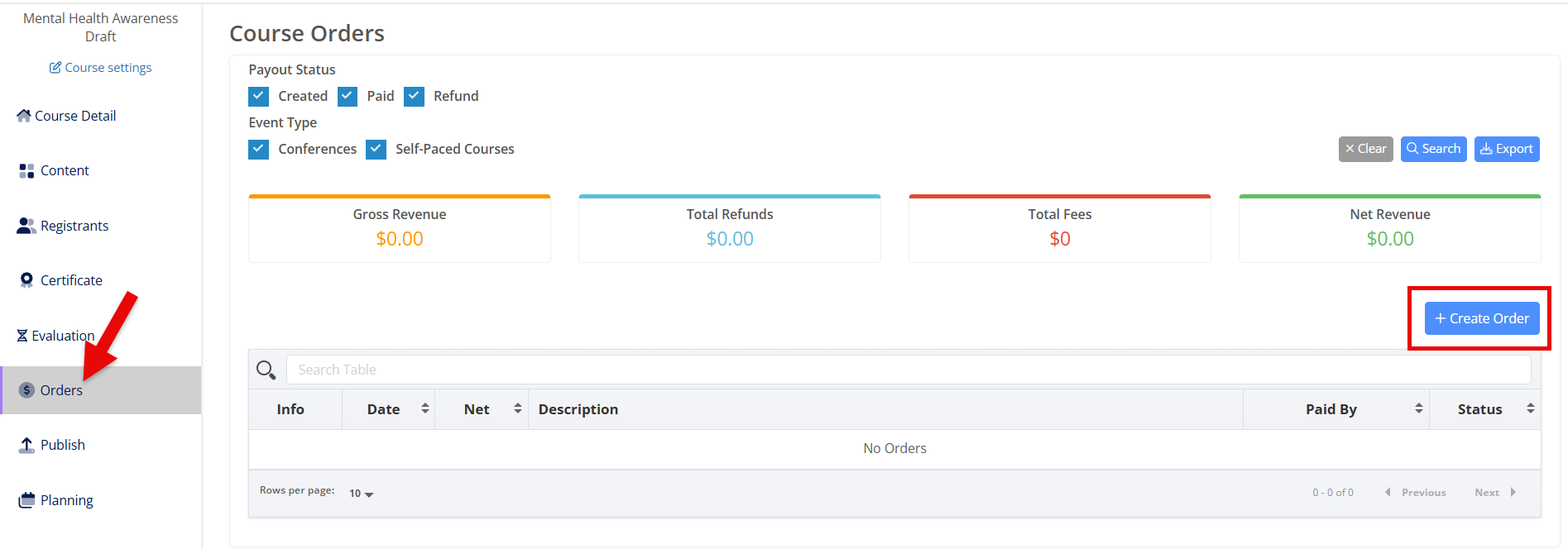 The Create Order feature allows you to take collect payments independently of the registration process.