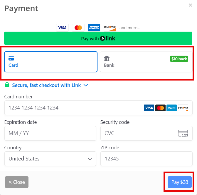 Next, enter the payor's credit card details or banking details, and then click Pay to complete the payment.