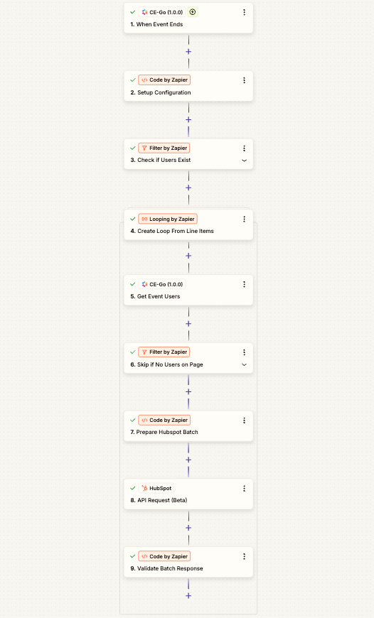When your event ends in CE-Go, this Zap automatically syncs all attendees to HubSpot as Contacts—no more manual data entry!