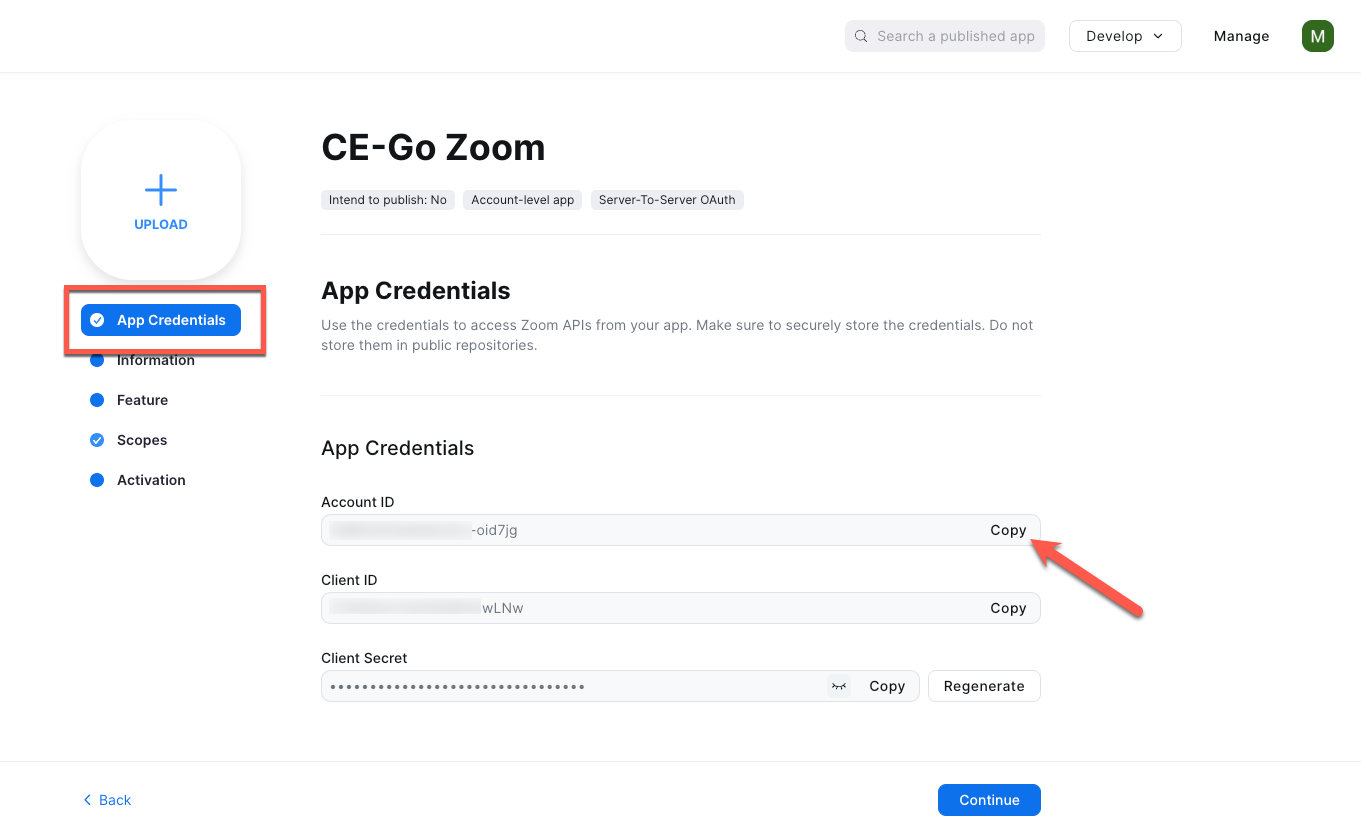 4. From the App Credentials page, copy your Account ID
